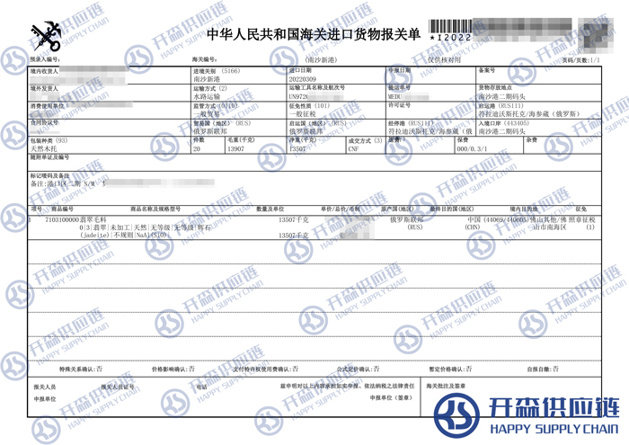 一、俄羅斯翡翠毛料進(jìn)口報關(guān)代理案例詳情