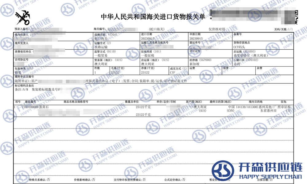 開森進(jìn)口供應(yīng)鏈擁有寶石/半寶石進(jìn)口報關(guān)操作經(jīng)驗及案例,十余年操作經(jīng)驗及案例可供參考,可按需定制寶石/半寶石進(jìn)口方案,幫助客戶解決進(jìn)口難題,快速進(jìn)口清關(guān)到港到貨。