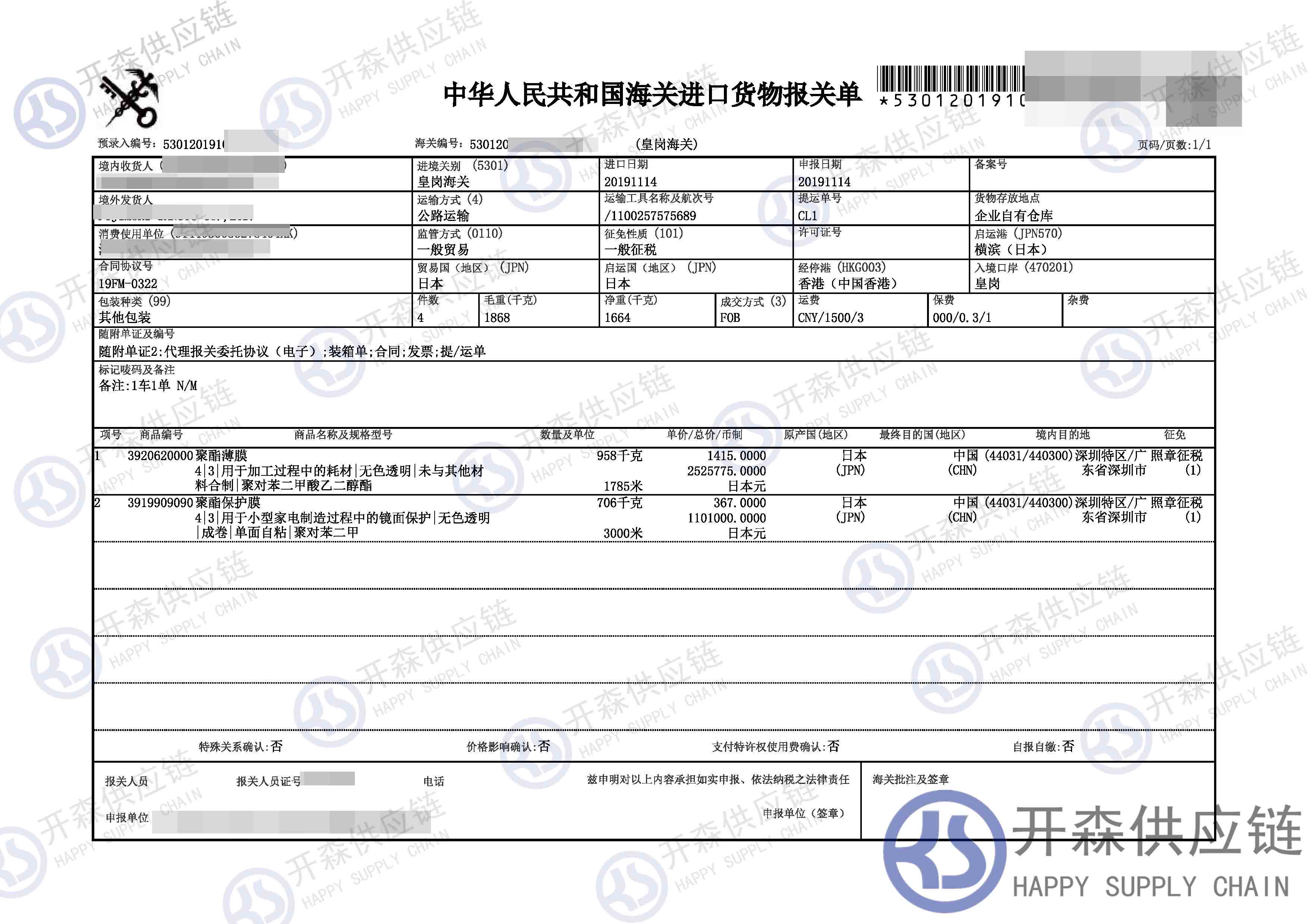 原文標題:【進口案例】聚酯薄膜進口報關代理服務