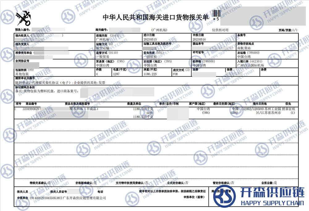 原文標題:廣州機場臺灣化妝品半成品進口報關代理【清關案例】