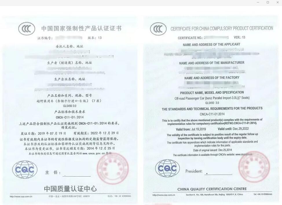 進口汽車入境前,生產(chǎn)商或其代理人應(yīng)向國家認監(jiān)委提出申請并取得CCC認證,在口岸入境環(huán)節(jié),海關(guān)驗證車輛CCC認證證明材料。