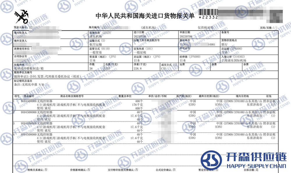 一、游戲手柄進(jìn)口報(bào)關(guān)代理案例詳情
