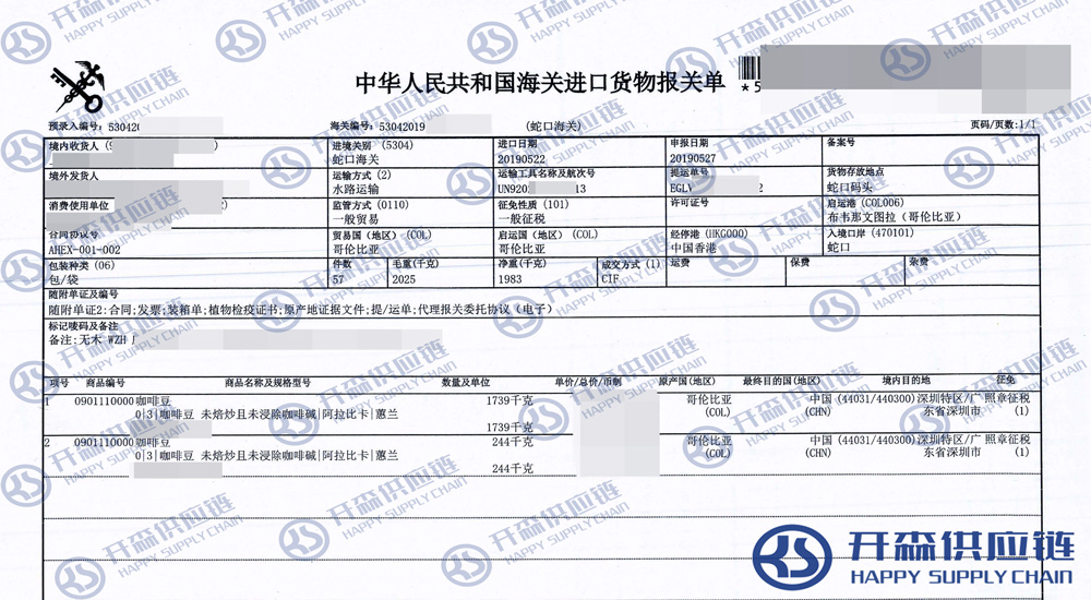 一、哥倫比亞咖啡豆進(jìn)口報(bào)關(guān)代理案例詳情